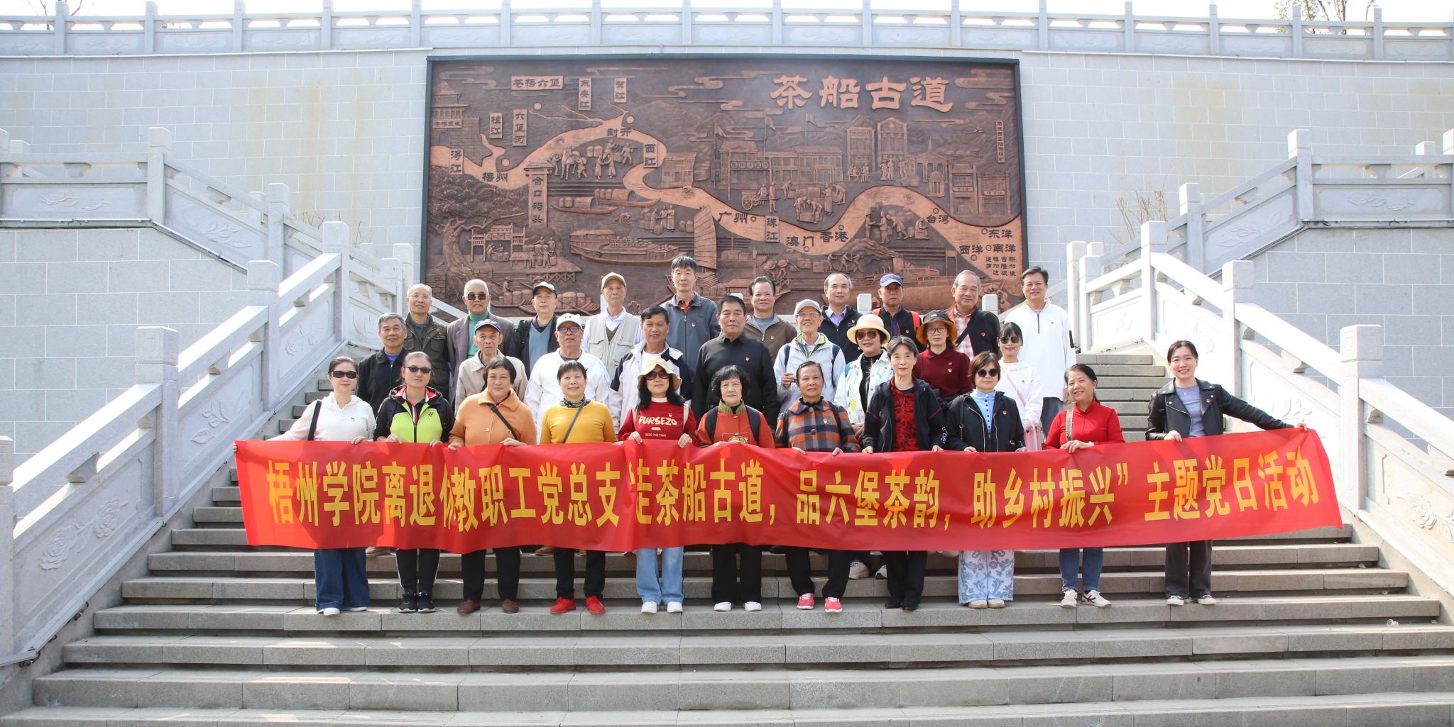 12月7日,离退休教职工党总支组织党员前苍梧县六堡镇,开展“走茶船古道,品六堡茶韵,助乡村振兴”主题党日活动,在实地走访中感悟六堡茶产业赋能乡村振兴,深入学习习近平总书记重要讲话和党的二十届四中全会精神。